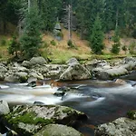 Penzion Zrzka Kořenov ligger ungefär 10 minuter med bil från pohlednice och 4 km från Glass Museum. Detta 3-stjärniga hotell erbjuder 6 rum med utsikt över bergen.